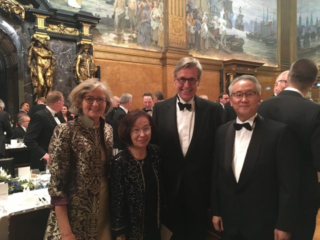 Honorarkonsul Dr. Christoph Hollenders und seine Frau Dr. Caroline Hollenders mit dem Botschafter der Republik Korea in Deutschland, S.E. Lee Kyung-soo und der deutschen Honorarkonsulin in Busan, Frau Kim Yoon soo beim 97. Ostasiatischen Liebesmahl in Hamburg. Die Festrede hielt Bundesaußenminister Sigmar Gabriel.